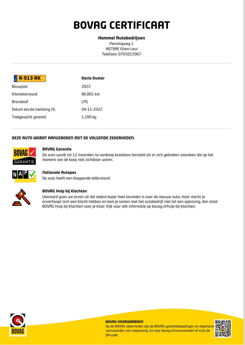 - BOVAG Garantie 12 maanden